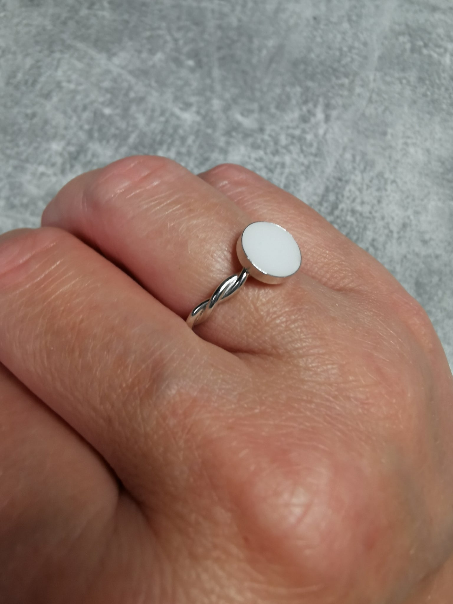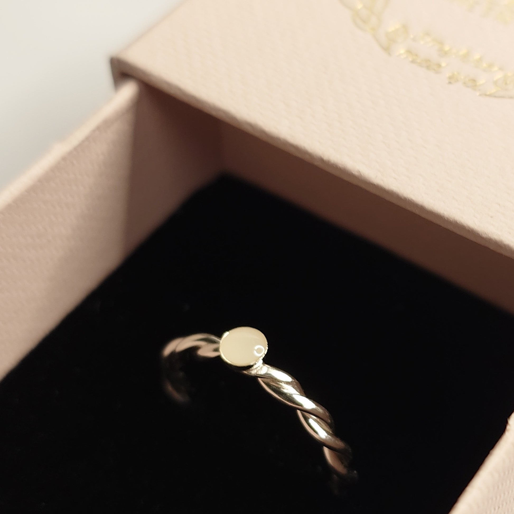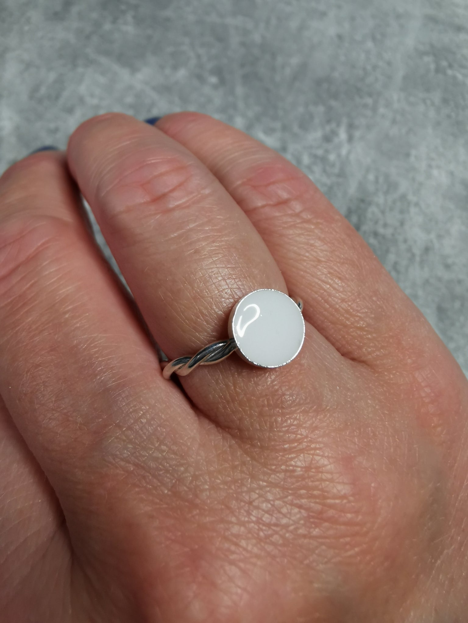 Håndlaget ring i 925 sterlingsølv eller 14 karat gullfylt. Nå også tilgjengelig som rosegullfylt! Steinen kan fåes i flere størrelser og lages av morsmelk eller andre inklusjoner.