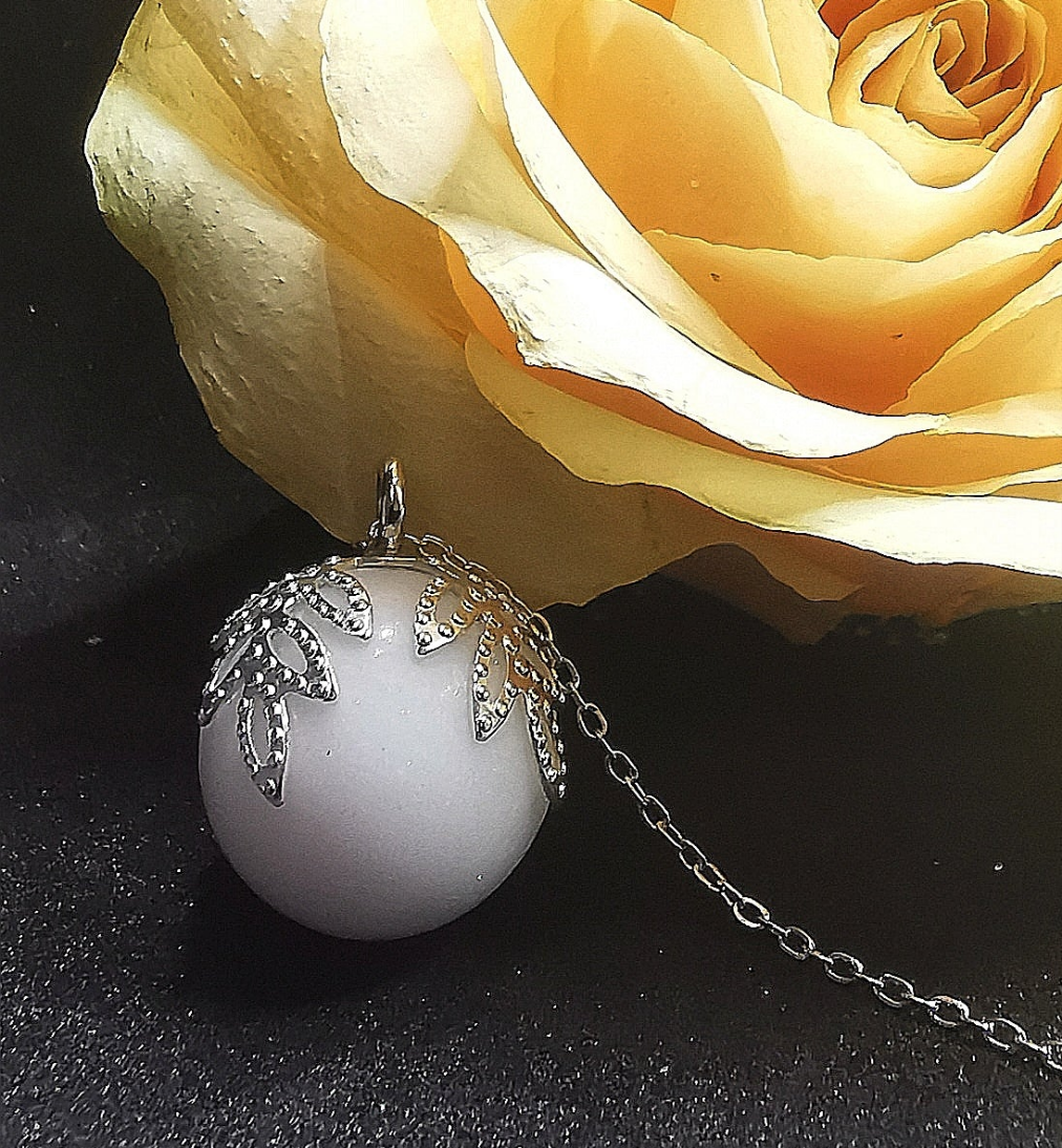 12 eller 16 mm perle med perlekappe i sølv- eller gullfarget metall. Lages med morsmelk eller andre inklusjoner. Du velger selv farge og om det skal være med glitter eller ikke.