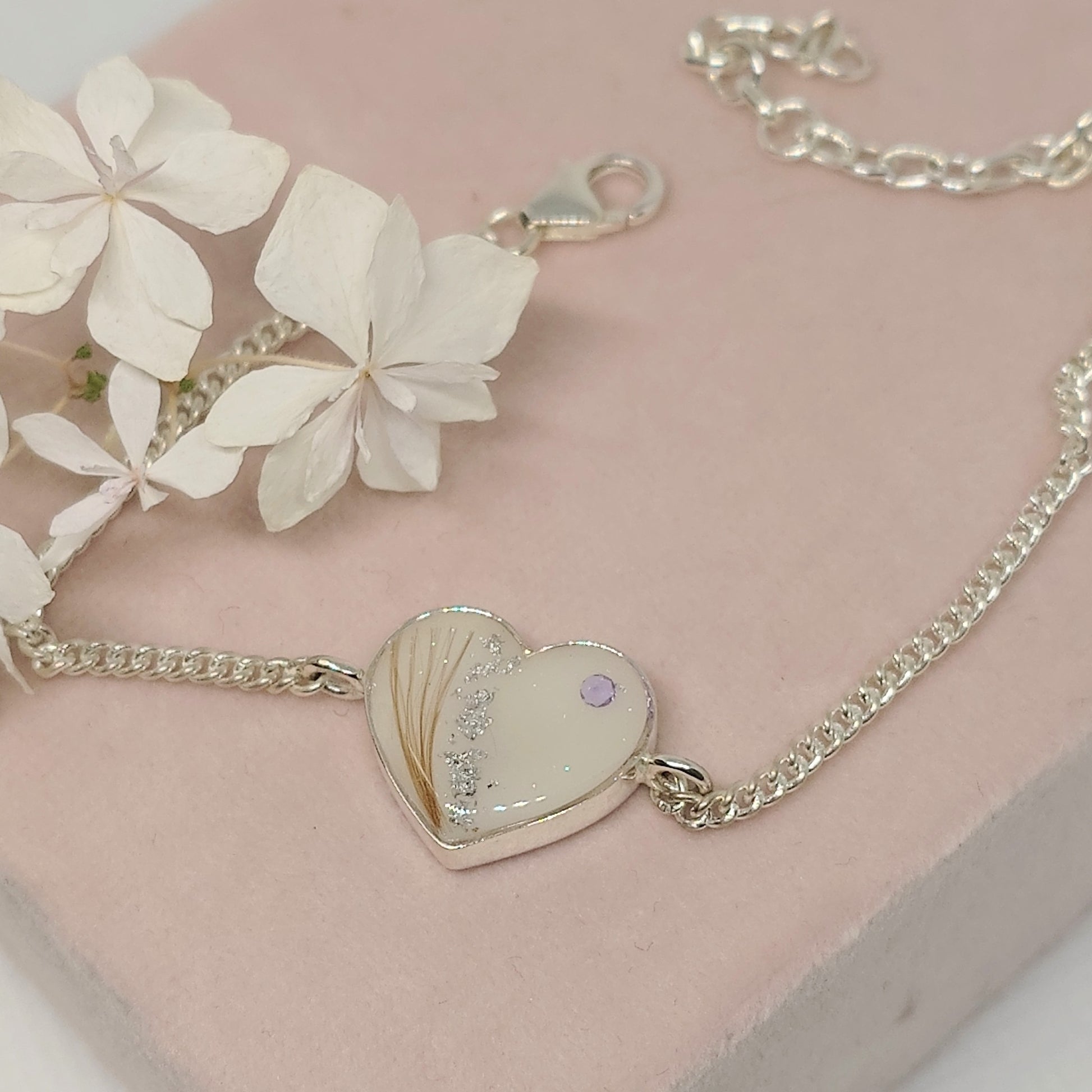 Justerbart armbånd i 925 Sterlingsølv. Lages med morsmelk eller andre inklusjoner.