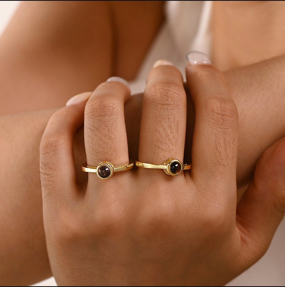 Denne ringen i 925 sterlingsølv gjemmer på en hemmelighet. I den svarte perla kan du nemlig få ditt eget bilde i miniatyr.