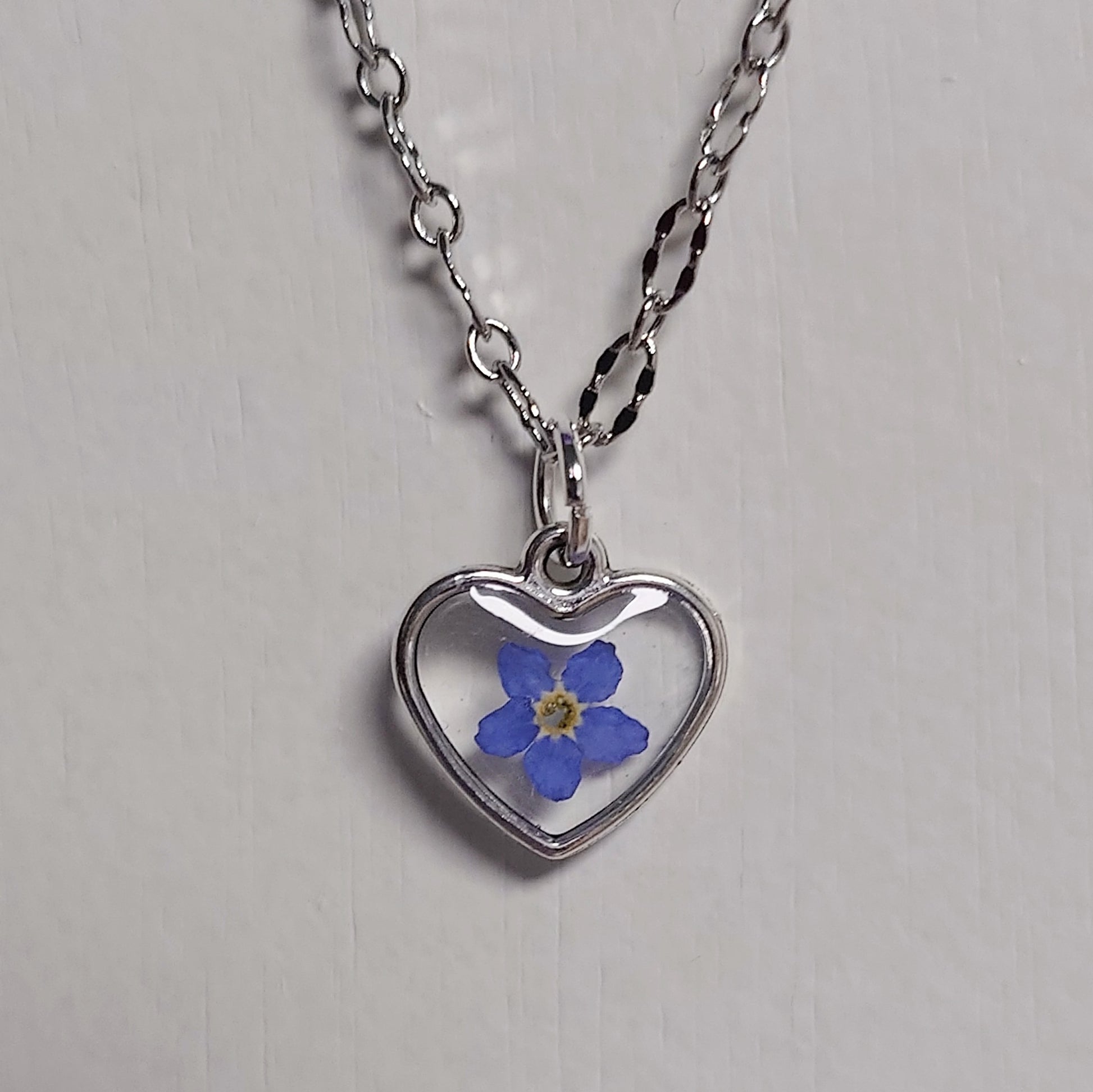 Hjertesmykke med en ekte Forglemmegei, håndplukket og tørket av meg. Perfekt som gave til for eksempel en kollega som skal bytte jobb eller en venn som skal flytte.