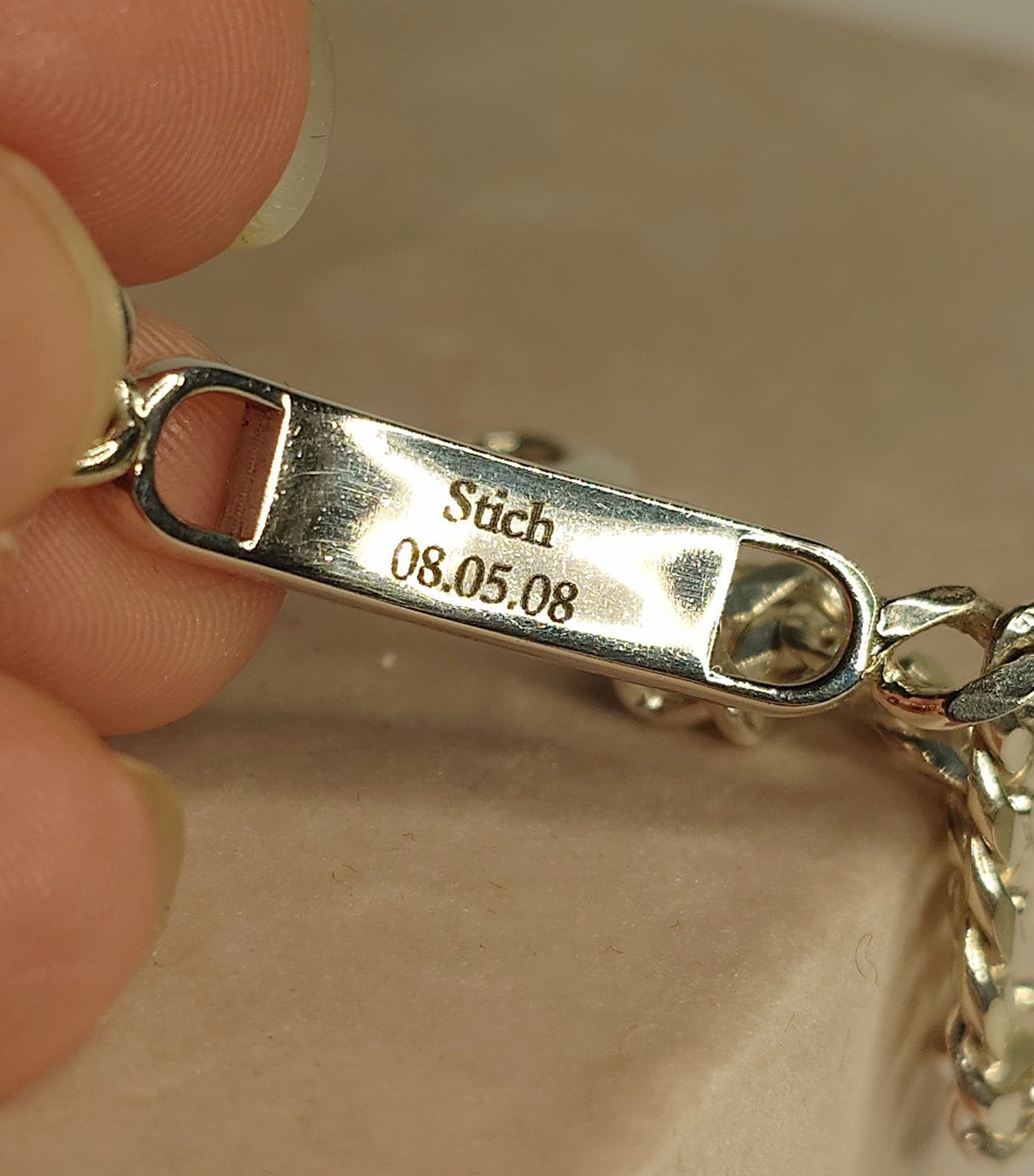Håndlaget armbånd i 925 Sterlingsølv med ditt personlige innhold. Flere lengder tilgjengelig.