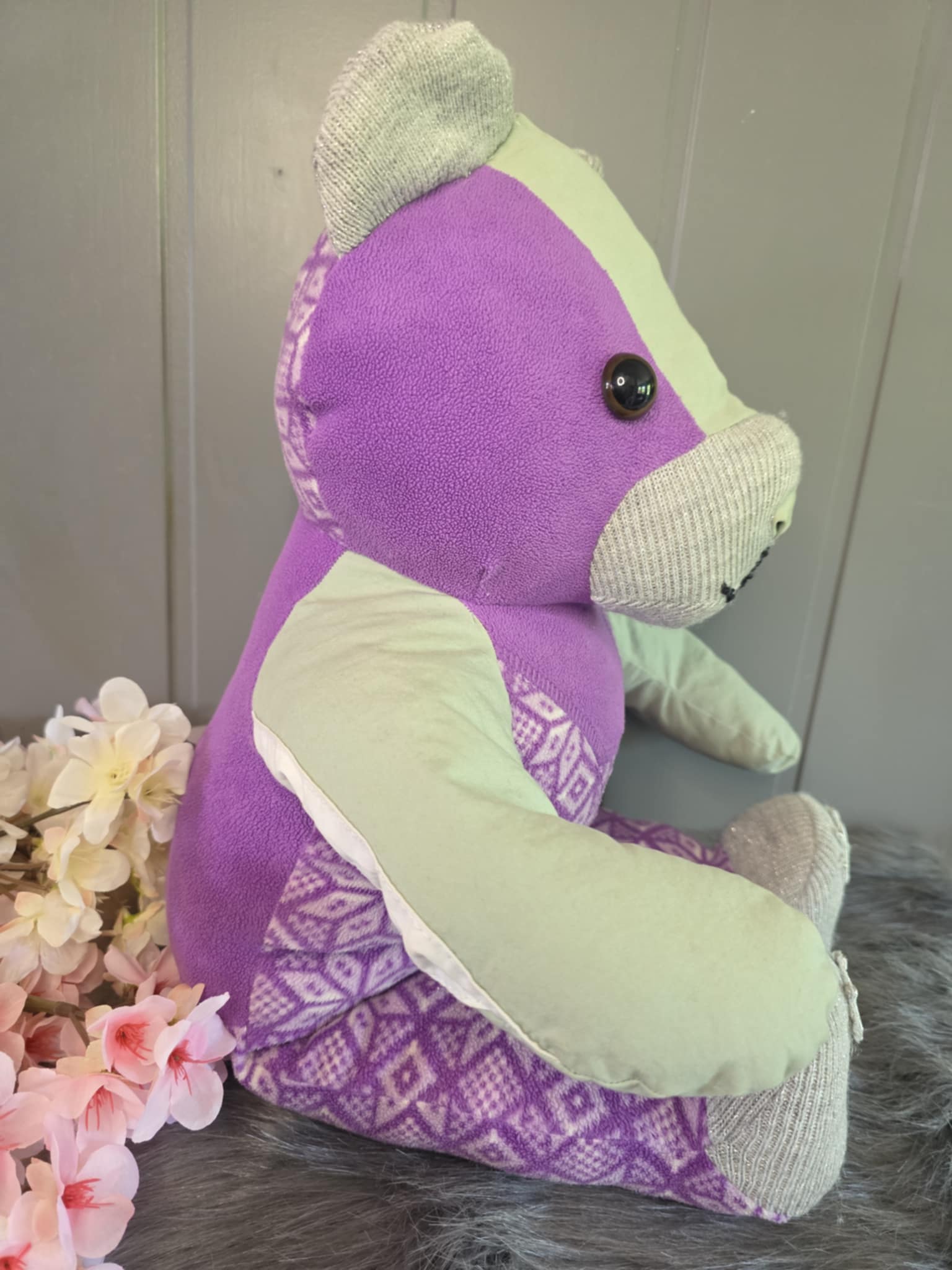 Hver minnebamse blir håndlaget av plagg du sender inn, og resultatet er en koselig og meningsfull bamse full av minner og historie.