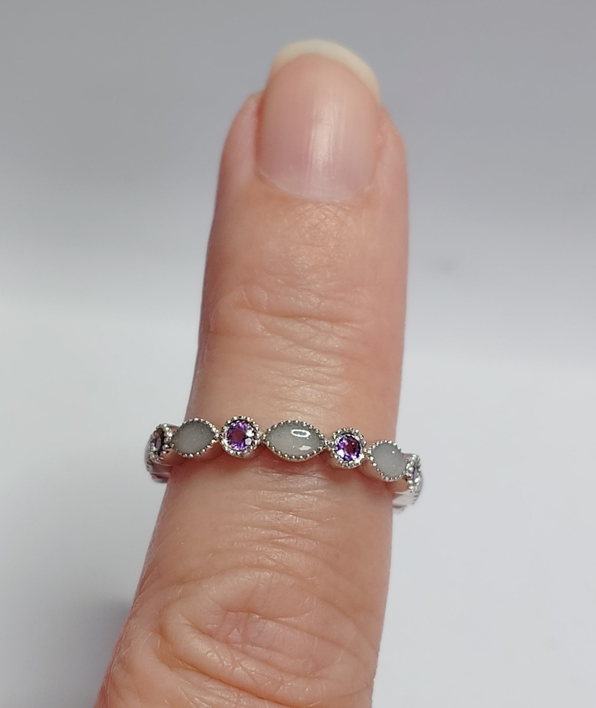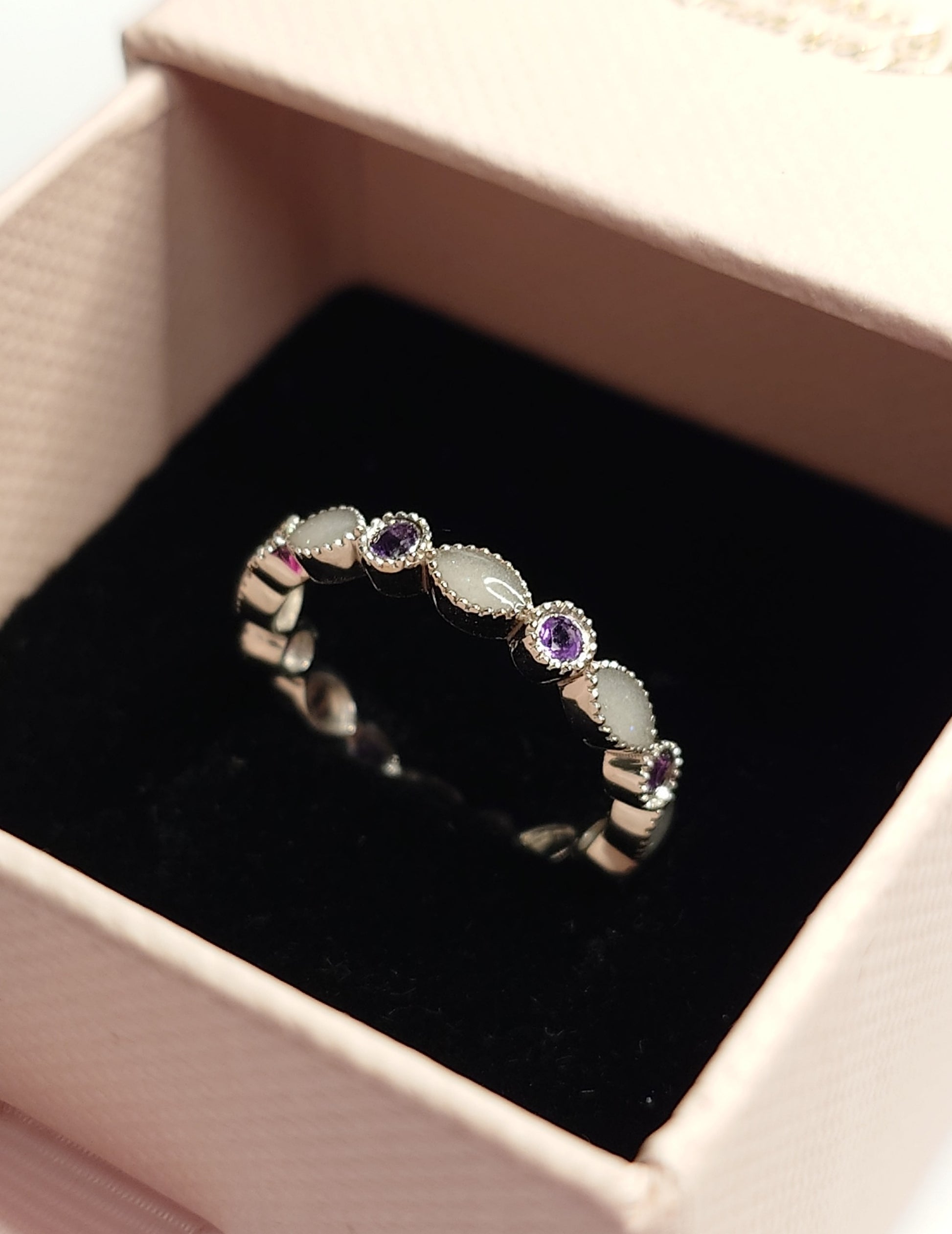 Ring med fødselssteiner (CZ-steiner). Se bilde av de forskjellige steinene.