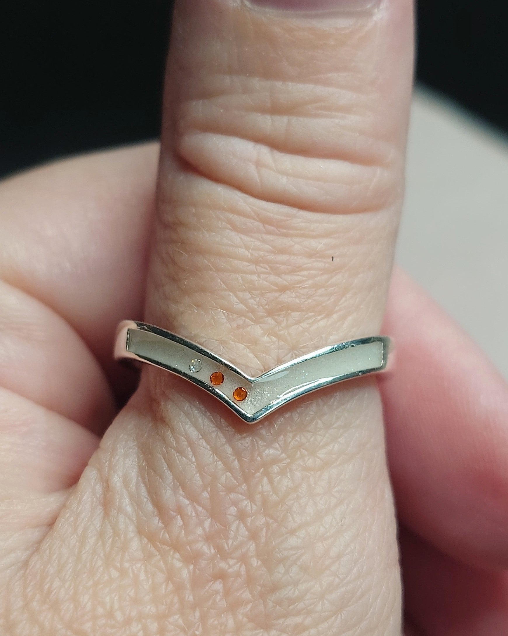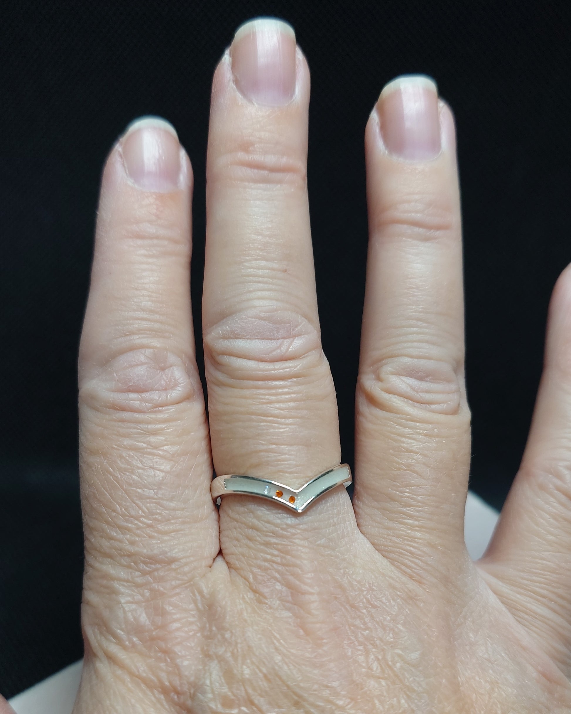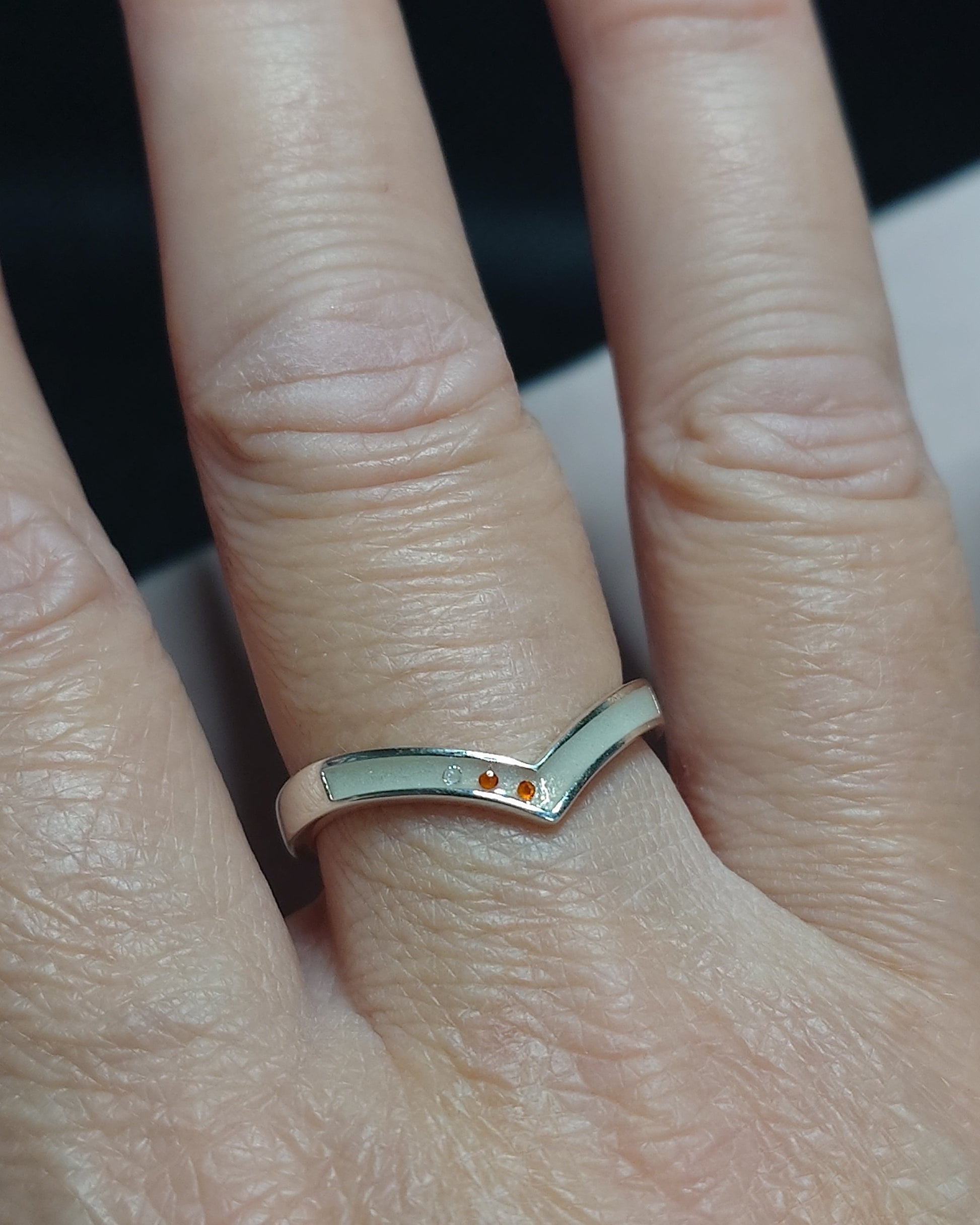 Håndlaget, sofistikert ring i 925 sterlingsølv. Fylles med morsmelk eller andre inklusjoner.