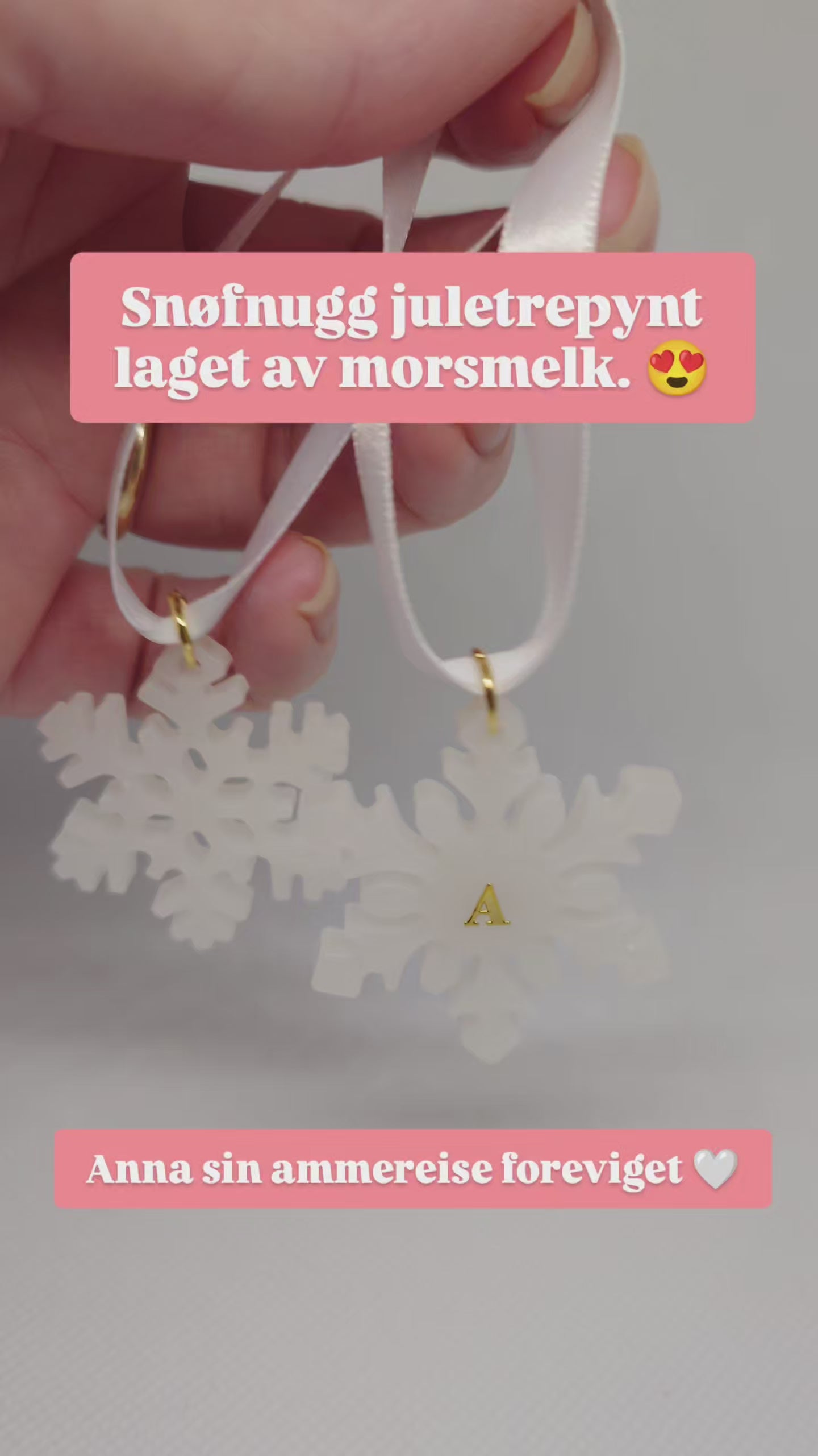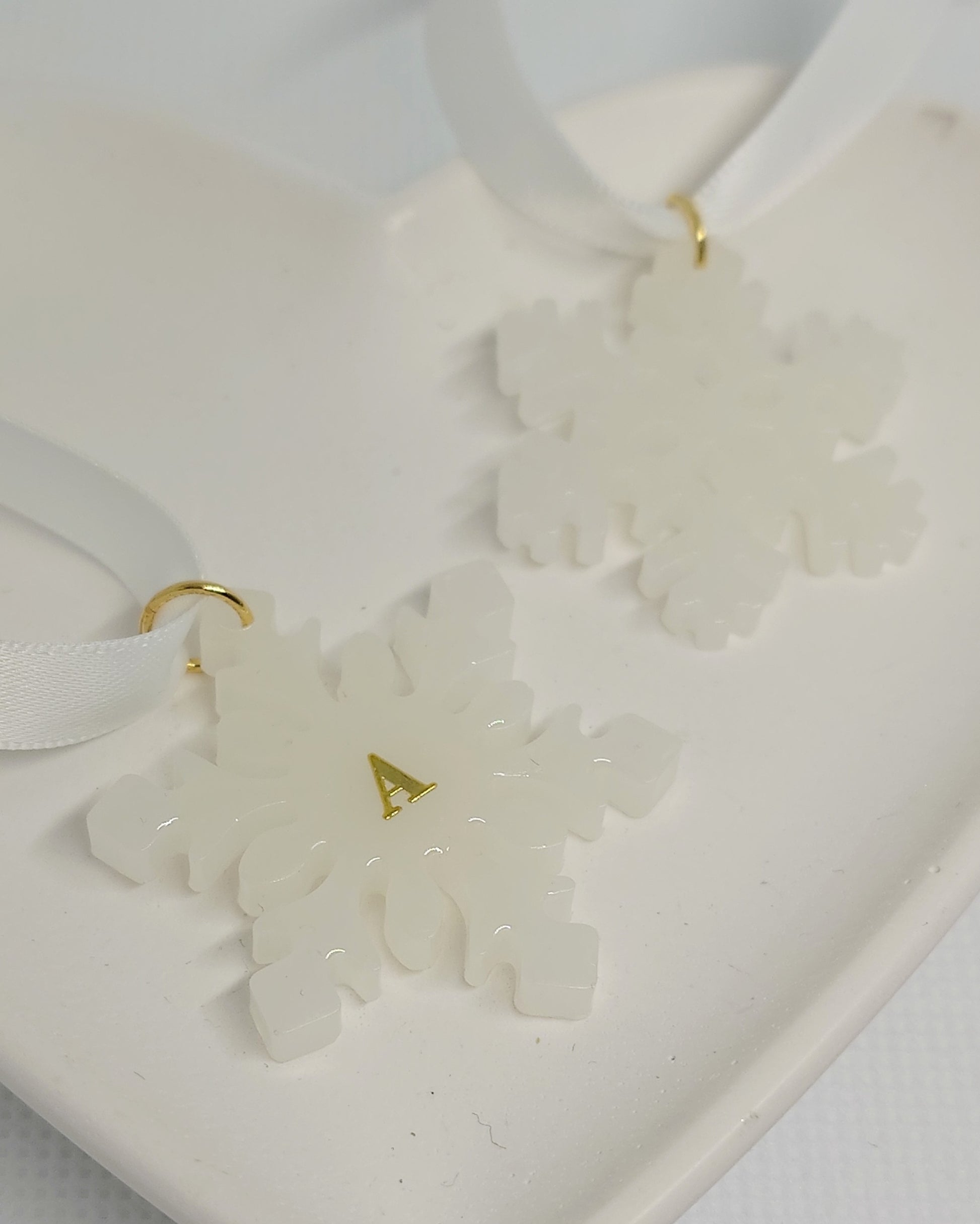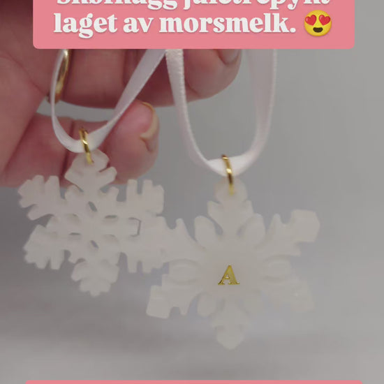 Disse nydelige snøfnuggene med oppheng måler ca 40x40 mm og kan fylles med for eksempel preservert morsmelk, aske, hårlokk og pels.