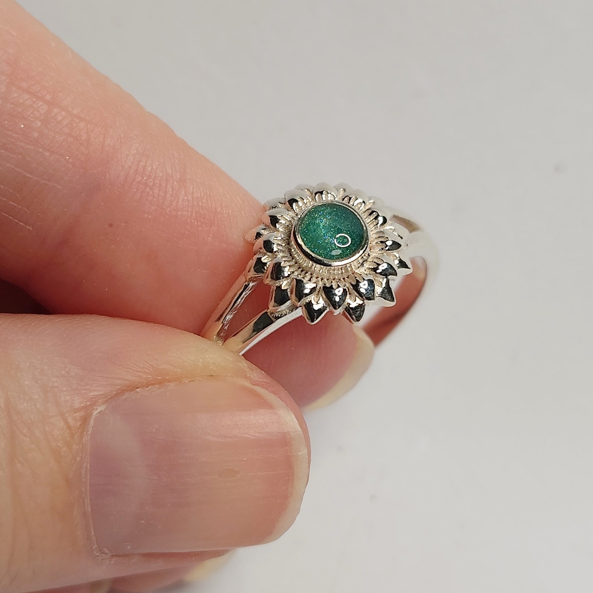 Denne ringen passer perfekt sammen med Solsikke anheng og øredobber.