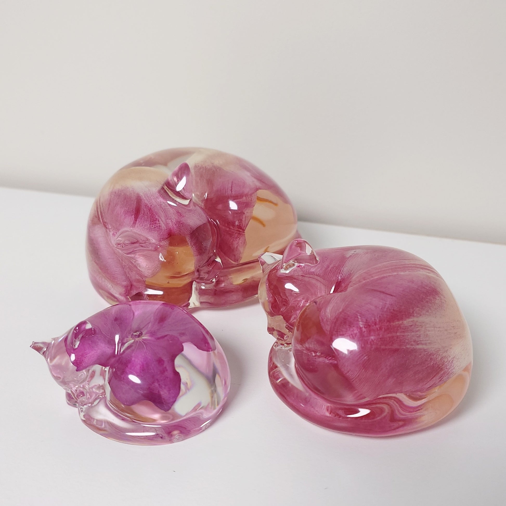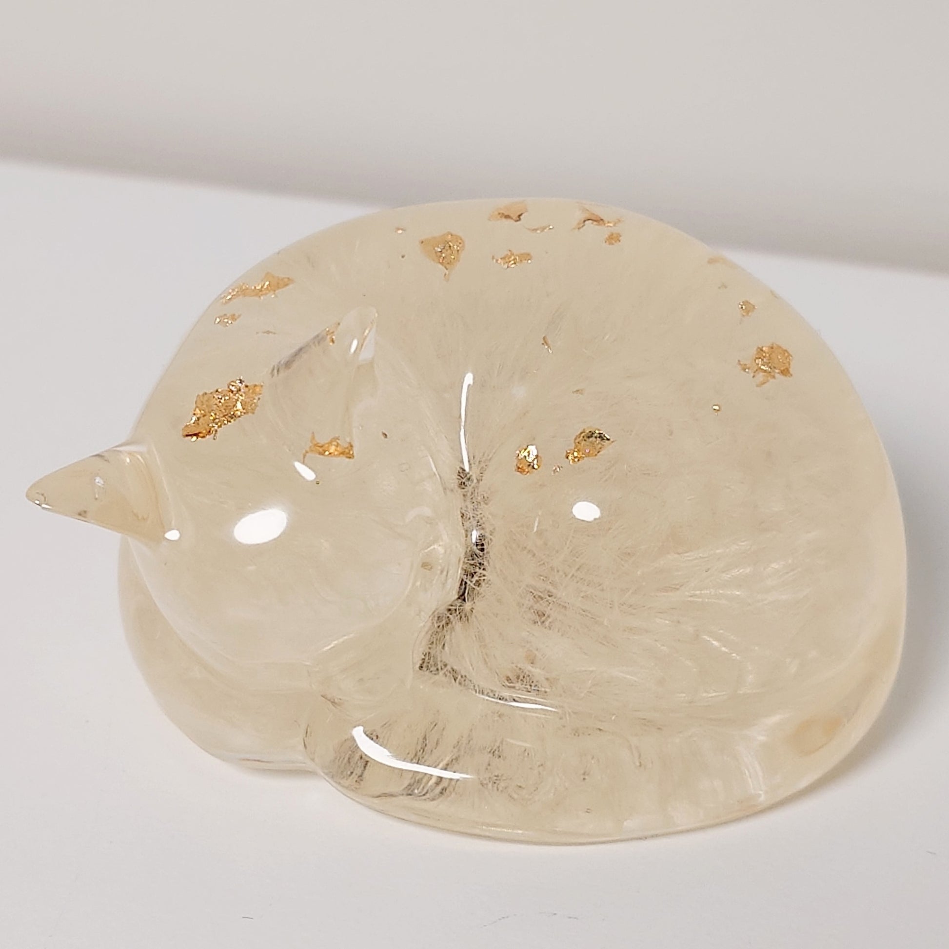 Skulptur av en sovende katt. Kan fylles med f eks. aske og/eller pels. Tre størrelser.
